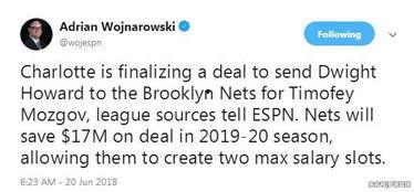 最近,篮球界的“小道消息大王”——沃神,又给我们带来了重磅炸弹。据他透露,篮网队即将迎来一场大交易,这次交易涉及的球员和球队可谓是星光熠熠。那么,这次交易究竟有哪些亮点呢?让我们一起来看看吧!